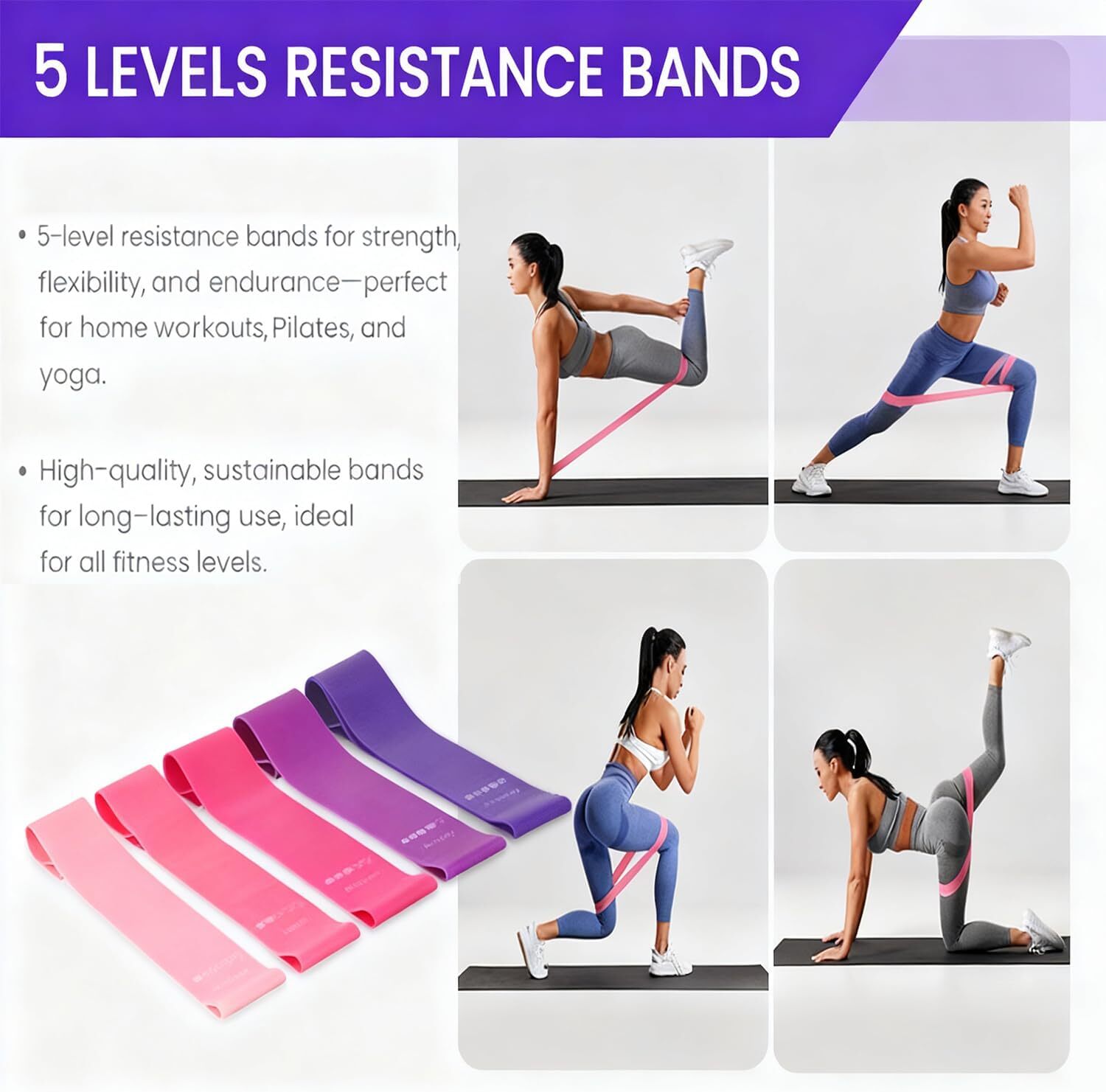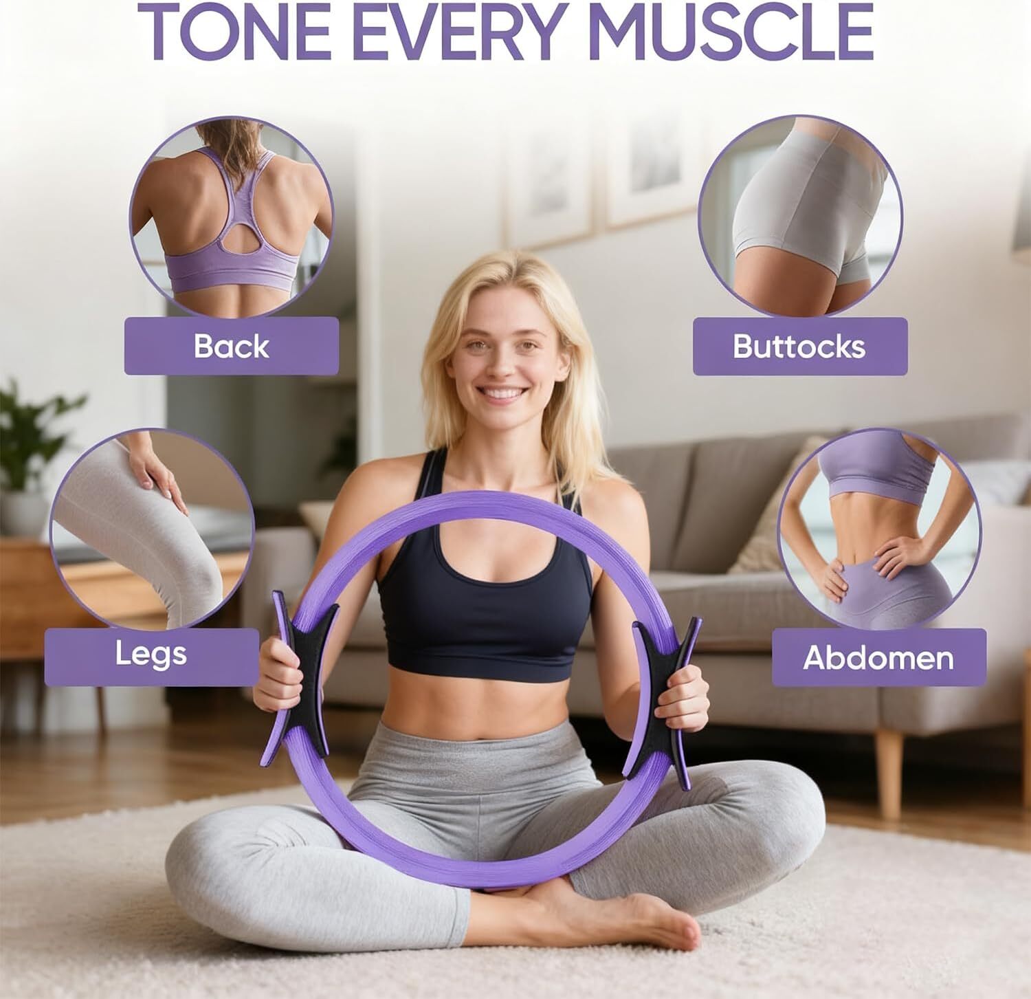 The pilates ring features steel core with foam padding for comfortable, effective workouts. 5-level resistance bands (light to heavy) target glutes, thighs, arms, and abs - ideal for beginners to advanced users.