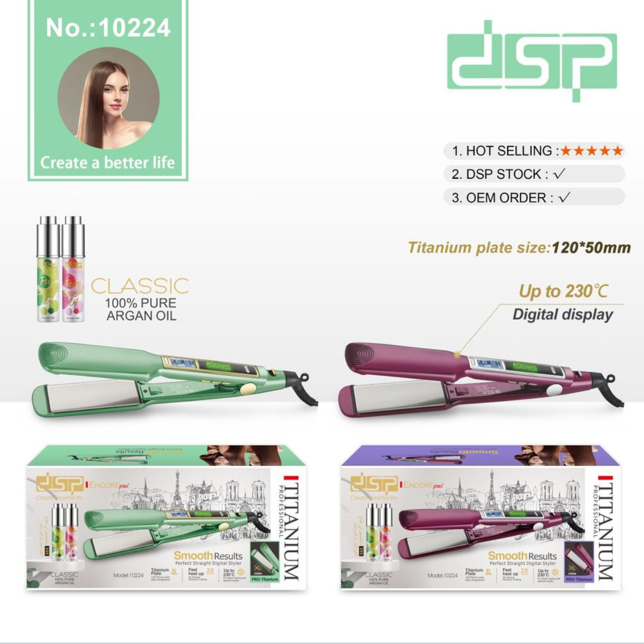 The DSP 10224 Hair Straightener is a professional-grade styling tool engineered to deliver smooth, shiny, and long-lasting straight hair with minimal damage. Designed with high-performance ceramic plates, it heats quickly and maintains consistent temperature for even styling. Its slim ergonomic shape makes it ideal for straightening, curling, and creating waves. Perfect for home use, salons, and travel.