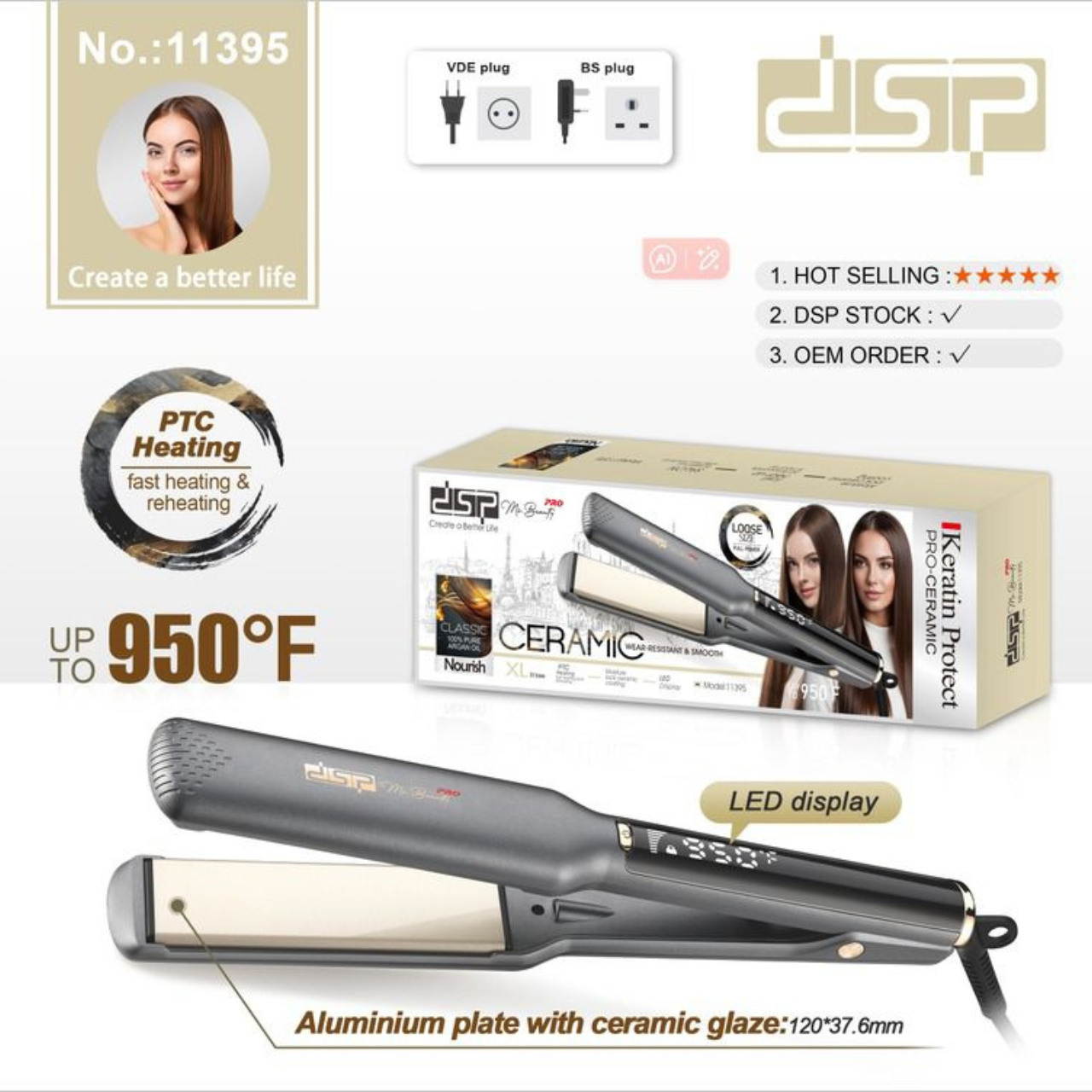 DSP Professional Ceramic Hair Straightener Model 11395