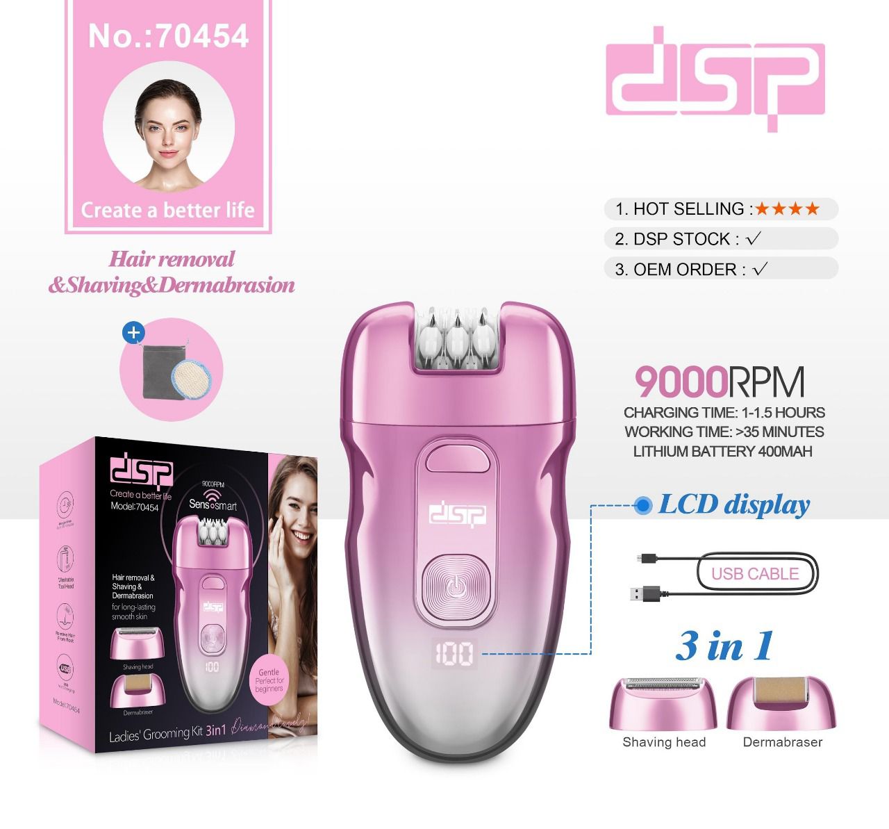 DSPThe DSP 70454 3-in-1 Ladies’ Grooming Kit is a practical and versatile personal care set designed for gentle and precise grooming. It includes multiple attachments to handle facial hair removal, body grooming, and detailing with ease. Compact and easy to use, it offers convenient grooming at home or while traveling, providing smooth results and reliable everyday performance.