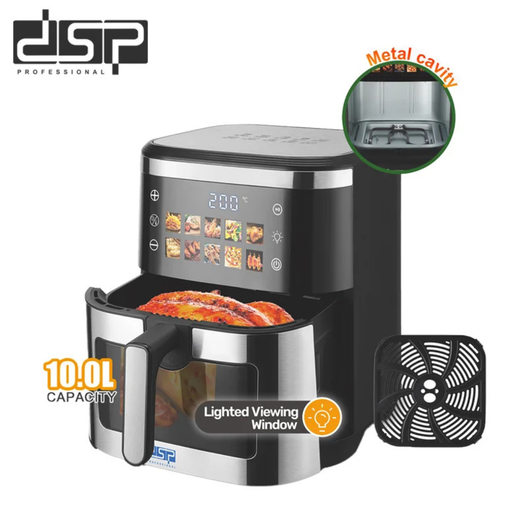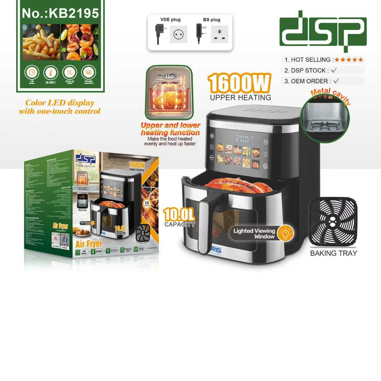 DSPThe DSP KB2195 Air Fryer is a powerful and healthy cooking solution designed to prepare crispy, delicious food using little to no oil. With rapid hot air circulation technology, it ensures fast, even cooking for fries, chicken, meat, pastries, and more while reducing fat and calories. Featuring an adjustable temperature control, large cooking basket, and modern compact design, it is perfect for home kitchens and daily healthy cooking.