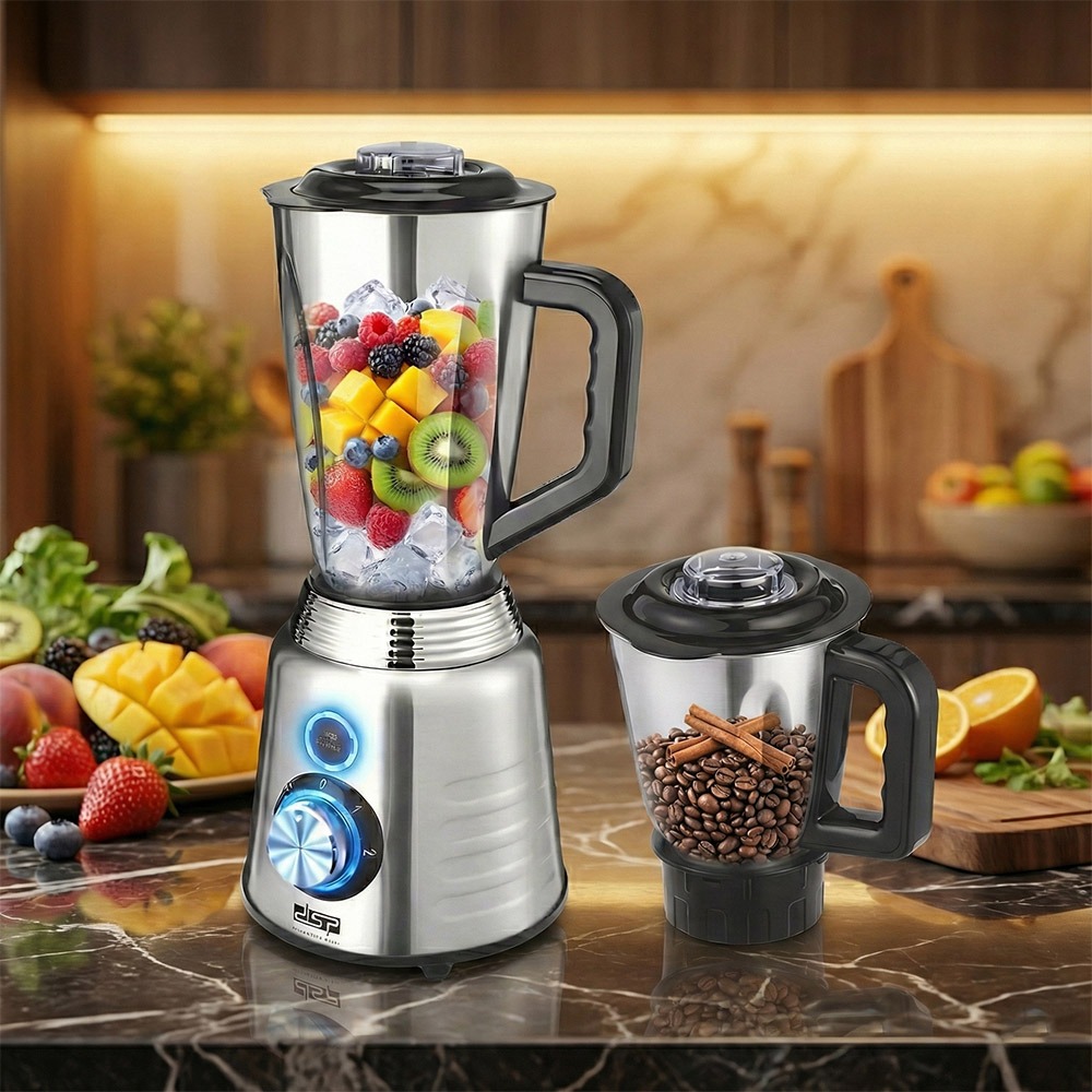 DSPThe DSP KJ2203 2-in-1 Blender is a versatile kitchen appliance designed for efficient blending and grinding tasks. Ideal for preparing smoothies, juices, sauces, spices, and dry ingredients, it combines strong performance with everyday convenience. Featuring durable blades and simple operation, it offers reliable results, easy cleaning, and practical use for home kitchens.